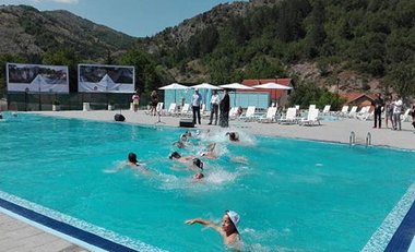 Звечан, 12. јул 2016. године – Директор Канцеларије за Косово и Метохију Владе Републике Србије Марко Ђурић, владика рашко-призренски Теодосије и председник привременог органа општине Звечан Иван Тодосијевић данас су у Бањској на северу Космета свечано пустили у рад прве базене на бањском комплексу "Рајска бања".
