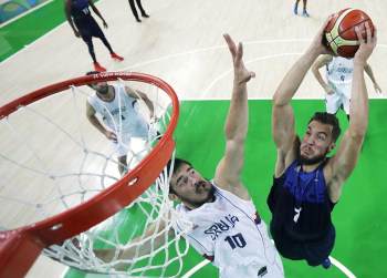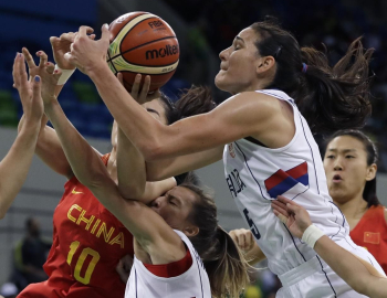 Борба за лопту на кошаркашкој утакмици Србија - Кина |
