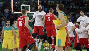 Славље кошаркаша Србије након тријумфа у полуфиналном сусрету са Аустралијом |