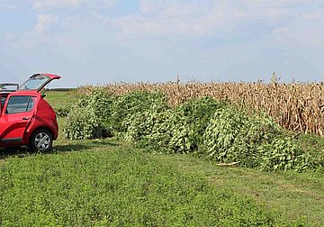 Полиција је засад са 340 стабљика индијске конопље, висине преко два метра и тежине тону и 240 килограма, пронашла на њиви осумњиченог Е. Л.