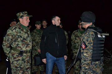 Прешево, 16. октобар 2016. године – Министар одбране у Влади Републике Србије Зоран Ђорђевић и начелник Генералштаба Војске Србије генерал Љубиша Диковић обишли су синоћ Заједничке снаге Војске Србије и МУП-а ангажоване на обезбеђењу државне границе на Миратовачком пољу, у близини Прешева.