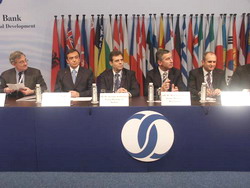 Желим да нагласим да је на простору од централне Европе до централне Азије, који укључује 27 земаља, Европска банка за обнову и развој највећи појединачни инвеститор, који осим сопствених средстава финансирања мобилише и најкрупније директне стране инвестиције. Европска банка за обнову и развој очигледно има водећу улогу у позитивној трансформацији целог овог простора.