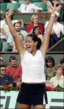 Париз, ФРАНЦУСКА, 28. мај 2005. године - Тенисерка Србије и Црне Горе Ана Ивановић пласирала се у осмину финала Отвореног првенства Француске у тенису, пошто је у мечу трећег кола победила званично трећу тенисерку света, Францускињу Амели Морезмо, резултатом 6:4, 3:6, 6:4.