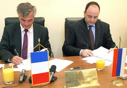 Београд, 30. мај 2005. године - Министар за економске односе са иностранством у Влади Републике Србије Милан Париводић и амбасадор Републике Француске у СЦГ Иг Перне потписали су данас Писмо о техничкој подршци, чиме је, као облик билатералне сарадње Француске и Србије, Влада Француске одобрила техничку помоћ овом министарству ради јачања институционалних капацитета кроз дугорочну сарадњу са француским експертима.