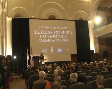 Београд, 21. април 2017. године – Документарни филм Лордана Зафрановића "Залазак столећа (Тестамент Л. З.)" из 1993. године, данас је по први пут приказан у Србији, поводом Дана сећања на жртве Холокауста, геноцида и других жртава фашизма у Другом светском рату.