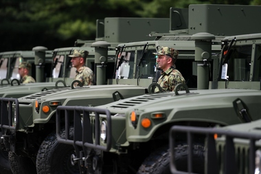 Панчево, 1. јун 2017. године – Председник Србије Александар Вучић, у пратњи министра одбране Зорана Ђорђевића, данас је у касарни "Народни херој Стевица Јовановић" у Панчеву, присуствовао примопредаји 19 возила "хамви", донације Сједињених Америчких Држава.