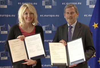 Београд/Брисел, 7. јун 2017. године – Министар без портфеља у Влади Републике Србије задужен за европске интеграције Јадранка Јоксимовић и комесар ЕУ за проширење и суседску политику Јоханес Хан потписали су данас први од четири финансијска споразума за подршку даљем развоју и јачању земље у правцу спремности за улазак у ЕУ.