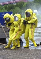 Београд/Ниш, 8. јун 2005. године - На платоу испред Електронске индустрије у Нишу данас је изведена јавна тактичко-показна вежба реаговања у случају хемијског акцидента у којој су учествовали Ватрогасни батаљон из Ниша и мобилна еко-токсиолошка јединица из Београда.