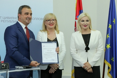 Сертификат је вршиоцу дужности генералног директора Аеродрома "Никола Тесла" Саши Влаисављевићу уручила директор Директората цивилног ваздухопловства Србије Мирјана Чизмаров.