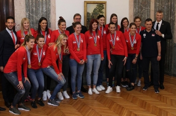 Београд, 3. октобар 2017. године – Председник Републике Србије Александар Вучић и министар омладине и спорта у Влади Републике Србије Вања Удовичић примили су данас одбојкашице Србије, које су освојиле златну медаљу на Европском првенству одржаном у Азербејџану и Грузији.