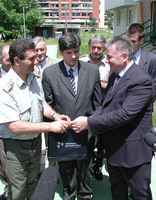 Ваљево, 20. јун 2005. године – Министар унутрашњих послова Драган Јочић и министар за капиталне инвестиције у Влади Републике Србије Велимир Илић уручили су данас у Ваљеву кључеве 27 станова припадницима МУП-а Србије и Војске Србије и Црне Горе.