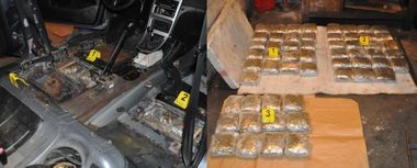 Полиција из Сремске Митровице је у аутомобилу "пежо" којим је управљао Ж.Л. (55), у специјално направљеном дуплом дну, пронашла 32,6 килограма марихуане спаковане у 56 пакета.