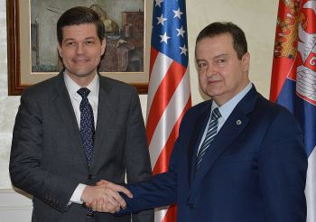 Београд, 13. март 2018. године – Први потпредседник Владе Републике Србије и министар спољних послова Ивица Дачић разговарао је вечерас са помоћником државног секретара САД за Европу и Евроазију Весом Мичелом о темама које се тичу регионалне стабилности, европског пута Србије, као и наставка Бриселског дијалога.