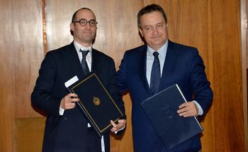 Београд, 16. април 2018. године – Први потпредседник Владе Републике Србије и министар спољних послова Ивица Дачић и државни секретар за спољне послове Републике Сан Марино Николо Ренци потписали су данас уговор између влада двеју земаља о избегавању двоструког опорезивања и спречавању пореске евазије у односу на порезе на доходак.