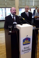 Београд, 12. јул 2005. године - Министар трговине, туризма и услуга у Влади Републике Србије Бојан Димитријевић отворио је данас хотел "Шумадија" у Београду, у чију је реконструкцију, која је трајала четири месеца, уложено приближно два милиона евра.