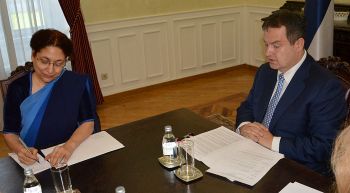Било је речи о предстојећој посети Дачића Републици Индији 2. и 3. маја, на позив министра спољних послова те земље Сушме Свараџ.