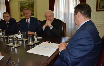 Београд, 10. мај 2018. године – Први потпредседник Владе Републике Србије и министар спољних послова Ивица Дачић сусрео се данас са замеником председника Комитета за међународне послове Савета федерације Федералне скупштине Руске Федерације Сергејом Кисљаком, који у Београду борави ради учешћа на Међународној парламентарној конференцији „Кроз идеју Европске уније ка миру и развоју“.