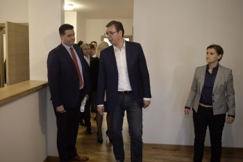 Београд, 4. јун 2018. године – Председница Владе Републике Србије Ана Брнабић обишла је данас, са председником Србије Александром Вучићем и потпредседником Владе и министром грађевинарства, саобраћаја и инфраструктуре Зораном Михајловић, огледни стан из државног пројекта станоградње за припаднике снага безбедности у насељу „Земунске капије“.