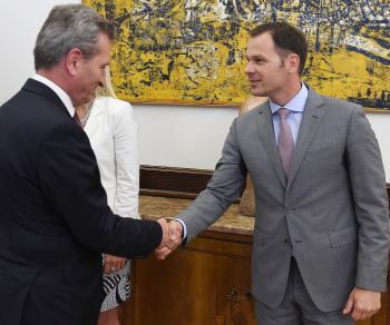 Београд, 19. јул 2018. године – Министар финансија у Влади Републике Србије Синиша Мали разговарао је данас са европским комесаром за буџет и људске ресурсе Гинтером Етингером о будућој сарадњи, пројектима из европских фондова и новом предлогу буџета Европске уније.