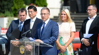 Београд, 17. август 2018. године – Потпредседник Владе Републике Србије и министар унутрашњих послова Небојша Стефановић и амбасадор Јапана у Србији Ђунићи Марујама присуствовали су данас примопредаји рафтинг и спасилачких чамаца, као и друге опреме Сектору за ванредне ситуације МУП-а Србије.