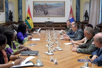 Београд, 20. август 2018. године – Министар одбране у Влади Републике Србије Александар Вулин и министар иностраних послова и регионалних интеграција Републике Гане Ширли Бочвеј разговарали су данас о унапређењу досадашње сарадње.