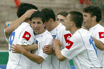 Белфаст, СЕВЕРНА ИРСКА, 23. јул 2005. године - Омладинска фудбалска репрезентација Србије и Црне Горе пласирала се у полуфинале првенства Европе које се одржава у Северној Ирској, пошто је данас у мечу трећег кола "А" групе победила селекцију Грчке резултатом 3:0.