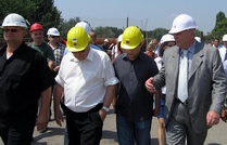 Велимир Илић (први здесна) у обиласку моста "Слобода" |
