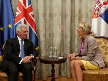 Београд, 19. септембар 2018. године – Министар за европске интеграције у Влади Републике Србије Јадранка Јоксимовић разговарала је данас са министром Велике Британије за Европу и Америку Аленом Данканом о приступању Србије ЕУ, ефектима реформи које се спроводе, ситуацији у региону и билатералним и другим питањима.