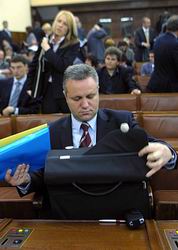 | Министар финансија Млађан Динкић уочи почетка данашње седнице Скупштине Србије |