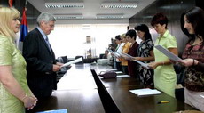 Београд, 5. септембар 2005. године - У Министарству правде Владе Републике Србије 11 новоизабраних судија за прекршаје које је именовала Влада Србије положило је данас заклетву пред министром правде Зораном Стојковићем, који им је пожелео успешан рад и часно и поштено обављање судијске функције.