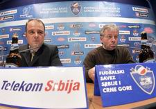 Са данашње конференције за новинаре коју је селектор Илија Петковић (десно) одржао у просторијама Фудбалског савеза Србије и Црне Горе |