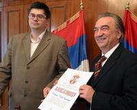 Београд, 11. октобар 2005. године - Државни секретар Министарства за дијаспору Владе Републике Србије Александар Чотрић уручио је данас захвалницу брачном пару Гудовић, Стевану и Мери Лин, из Феникса у америчкој савезној држави Аризона.