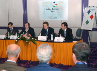 Београд, 11. октобар 2005. године - Министар за економске односе са иностранством у Влади Републике Србије Милан Париводић истакао је данас да је ове године укупна вредност трговине између Србије и Италије износила 1,5 милијарди долара, док је укупан спољнотрговински дефицит са прошлогодишњих 480 милиона смањен на 120 милиона управо захваљујући повећању спољнотрговинске размене са Италијом.
