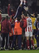 Тренер Црвене звезде Валтер Зенга се после утакмице нашао на рукама својих играча |