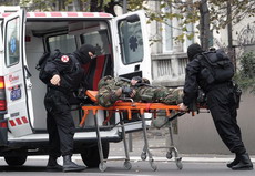 Београд, 21. октобар 2005. године - Припадници Специјалне антитерористичке јединице Министарства унутрашњих послова Владе Републике Србије данас су у Амбасади САД у Београду симулирали напад терориста, а потом и операцију хватања терориста и ослобађања талаца.