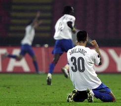 Радост Бориса Смиљанића и његових саиграча после победоносног поготка Ђулија Росија |
