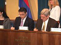 Београд, 21. мај 2004. године - Министар правде у Влади Републике Србије Зоран Стојковић и шеф Мисије ОЕБС-а у Србији и Црној Гори Маурицио Масари потписали су данас у Влади Србије Меморандум о разумевању и Споразум о изради Нацрта закона о заштити сведока.