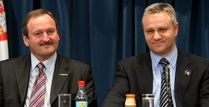 | Задовољство након успешно окончаних преговора: Хуберт Горбах и Млађан Динкић |