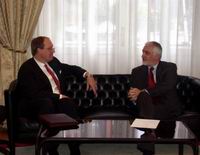 Београд, 25. мај 2004. године - Потпредседник Владе Републике Србије Мирољуб Лабус и новоименовани амбасадор САД у Србији и Црној Гори Мајкл Полт сложили су се током данашњег сусрета у Влади Србије да је потребно посветити посебну пажњу развоју економских односа две земље.