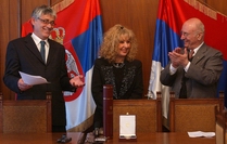 Београд, 5. мај 2006. године - Министар за дијаспору у Влади Републике Србије Војислав Вукчевић уручио је данас медаљу "Човекољубље" председнику Друштва српских лекара и стоматолога у Немачкој и хуманитарне организације "Прохуман" др Мирјани Андријевић-Кру.