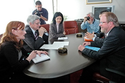 Београд, 14. јун 2006. године - Министар правде у Влади Републике Србије Зоран Стојковић разговарао је данас са шефом Мисије ОЕБС-а у Србији Хансом Ола Урстадом о улози и помоћи ове мисије у спровођењу Стратегије реформе правосуђа у Србији.