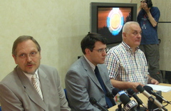 Слева: Радомир Наумов, Александар Поповић и генерални директор РТС Александар Тијанић |