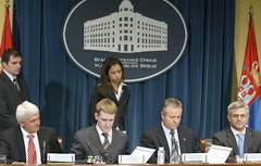Београд, 10. јул 2006. године - Министри финансија Србије и Црне Горе Млађан Динкић и Игор Лукшић и гувернери централних банака Радован Јелашић и Љубиша Крговић потписали су данас Споразум између Србије и Црне Горе о регулисању чланства у међународним финансијским организацијама и разграничењу финансијских права и обавеза.