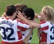Радост фудбалера Црвене звезде после јединог поготка на утакмици |