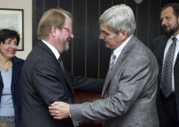 Београд, 11. октобар 2006. године - Министар правде у Влади Републике Србије Зоран Стојковић упознао је данас шефа Мисије ОЕБС-а у Србији Ханса Ола Урстада са решењима из новог Устава Србије.