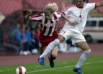 У тим Црвене звезде се вратио Душан Баста (пругасти дрес) после дужег одсуствовања са терена због повреде |