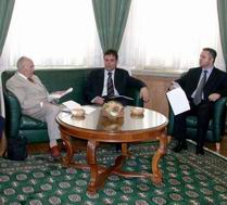 Београд, 9.јун 2004. године - Председник Владе Републике Србије Војислав Коштуница, министар финансија Млађан Динкић и министар рада, запошљавања и социјалне политике Слободан Лаловић разговарали су данас са делегацијом Савеза пензионера Србије. Коштуница је у разговору истакао важност решавања свих социјалних питања и испуњавања заосталих обавеза, наглашавајући да пензионери заслужују посебну пажњу државе.