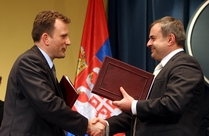 Београд, 23. децембар 2006. године - Директор Јавног предузећа "Југоимпорт СДПР" Стеван Никчевић и представник руске компаније "МИГ" Дмитриј Остапчук потписали су данас у Влади Републике Србије уговор о ремонту пет авиона МИГ-29.