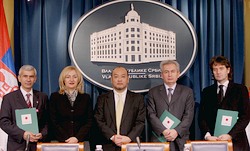 Београд, 28. децембар 2006. године - Директори Клиничког центра Србије Војко Ђукић, Клиничко-болничког центра "Драгиша Мишовић" Ђорђе Бајец и Здравственог центра Пирот Радован Илић потписали су данас са отправником послова Амбасаде Јапана у Београду Терухиком Шинадом уговор о донацији Владе Јапана у вредности од 199.954 евра.