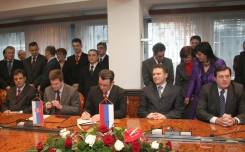 Потписивању уговора у Влади Републике Српске присуствовали су и председници влада Републике Србије и Републике Српске (РС) Војислав Коштуница и Милорад Додик, као и чланови кабинета двеју влада.